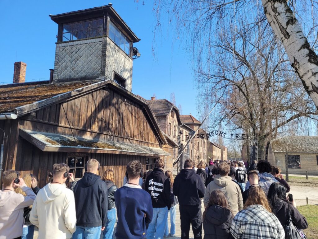 Kolejnym etapem wyjazdu było Auschwitz, miejsce naznaczone trudną historią. Tam młodzież wysłuchała poruszających opowieści o losach ludzi, którzy przeżyli obóz. Spacerując w ciszy między barakami, uczniowie mogli lepiej zrozumieć tragiczne wydarzenia przeszłości i docenić wartość życia, wolności.